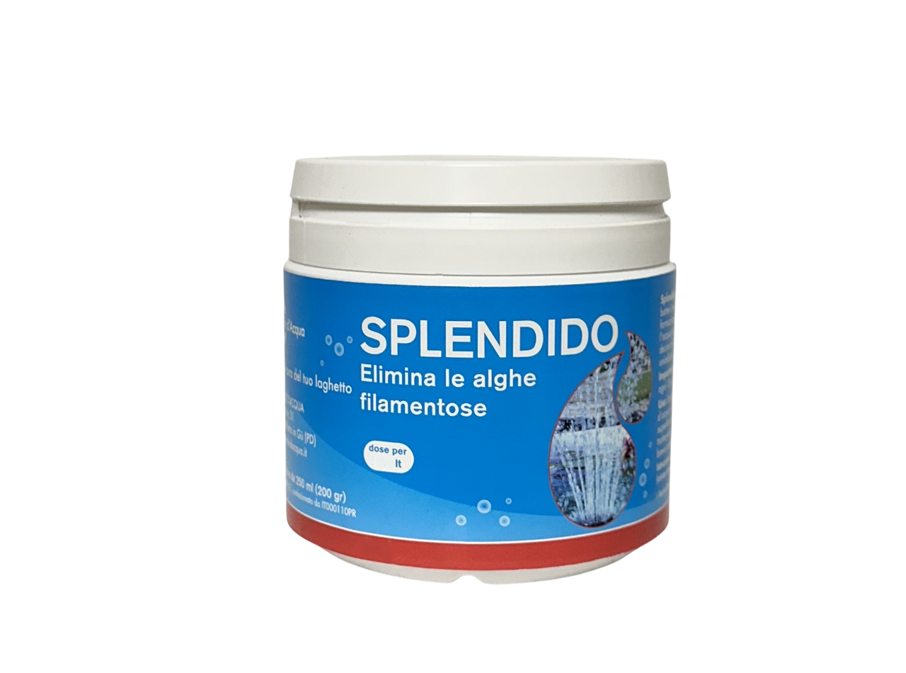 Sciogliere 1 misurino ogni 1000lt in un secchiello pieno d’acqua di laghetto e versarla. Per uno o due giorni l’acqua sarà bianca.
